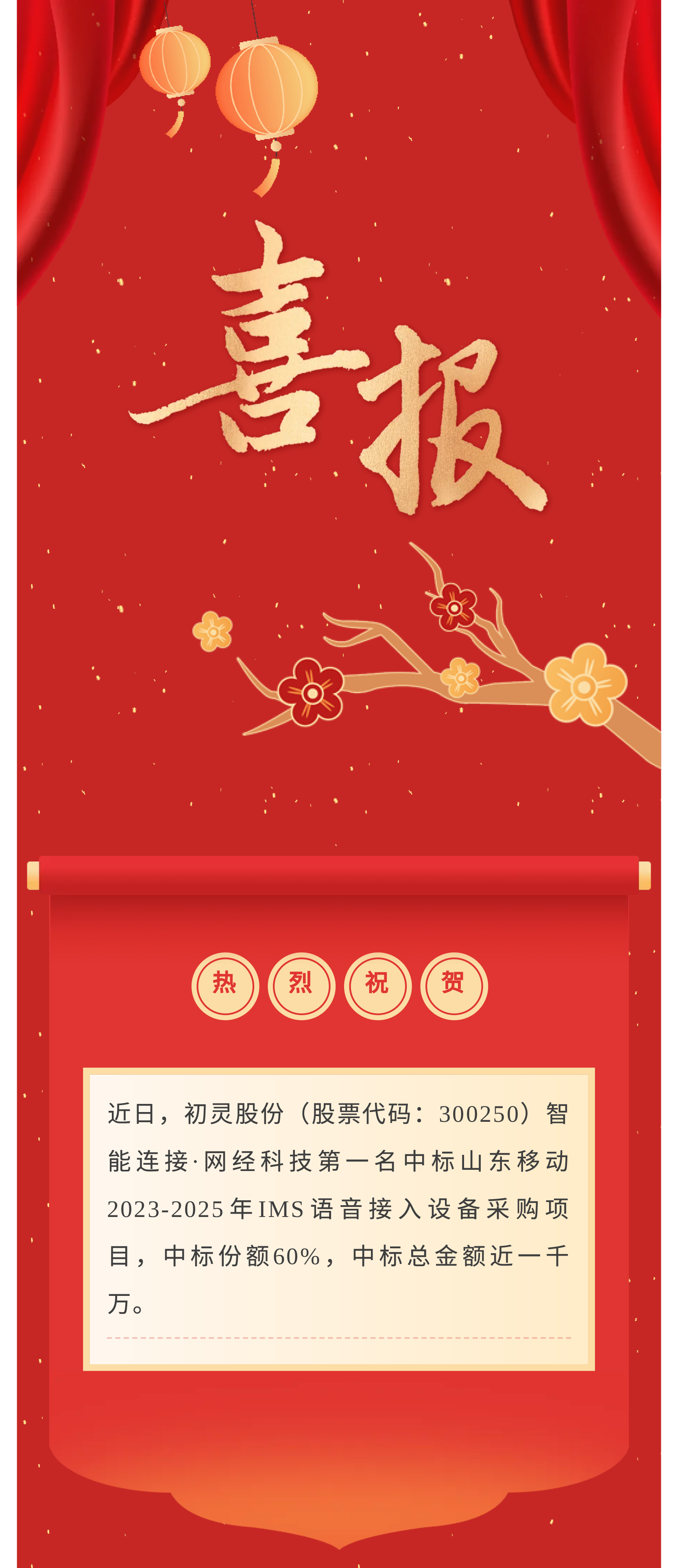 中标喜讯 | 初灵股份·智能连接·开云体育第一名中标中移吉林公司全省集客专业IMS接入终端设备项目