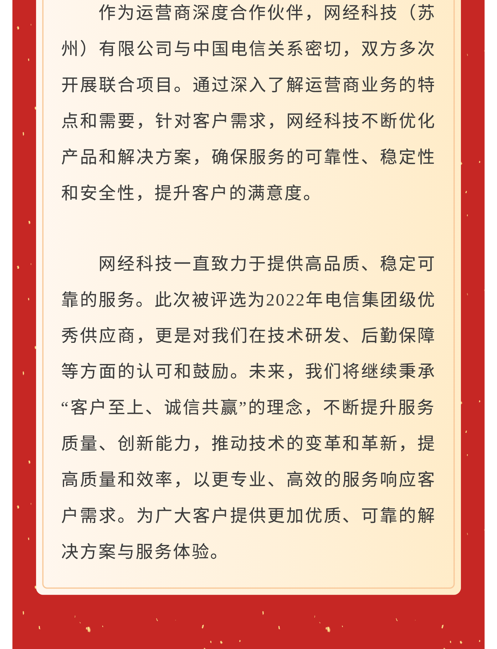 喜报 | 初灵股份·智能连接·开云体育荣获电信集团2022年度优秀供应商表彰