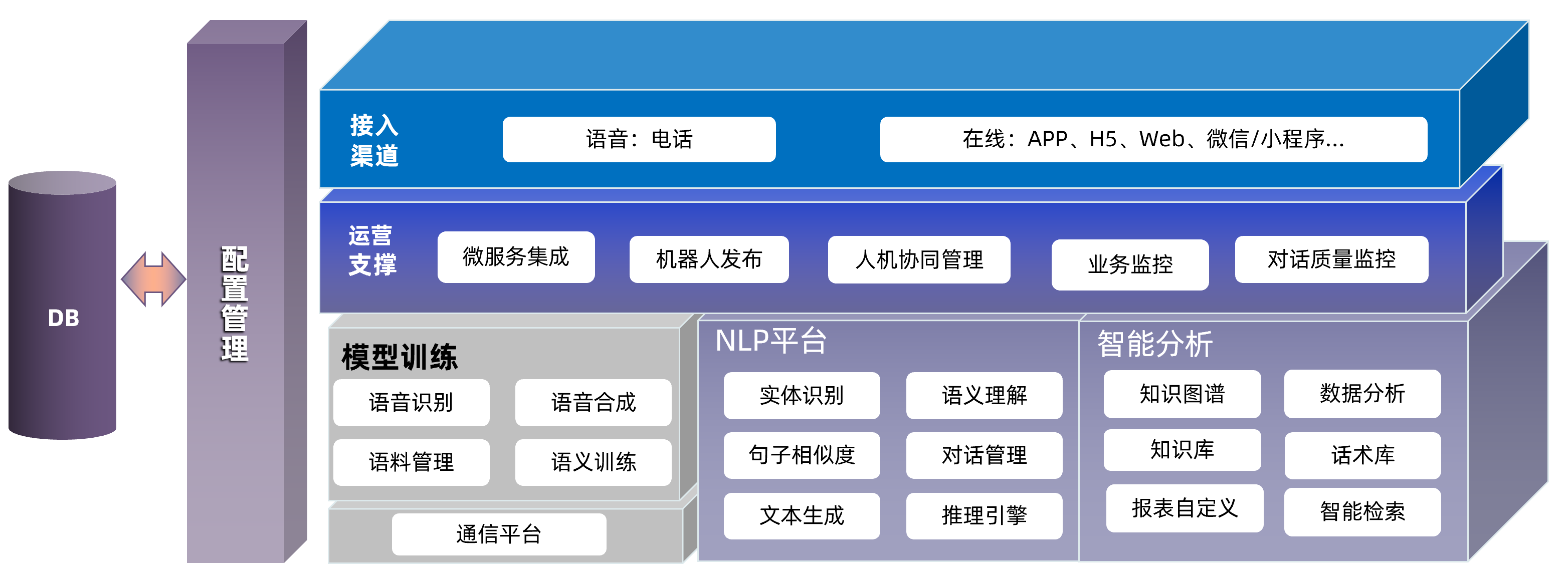 开云体育智能呼叫机器人总体架构基于统一的AI能力、模型和知识管理平台,可以提供多场景下AI智能机器人服务与运用。