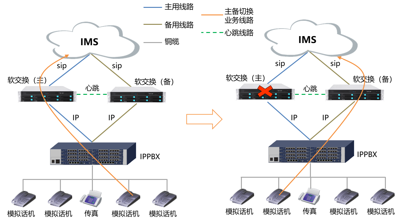 双机热备,主备设备之间能实现无缝切换,为客户端提供不间断的通信服务保障。