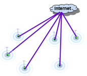 从上图中两种网络组网拓扑图可以看出,无线Mesh组网结构采用网状网络结构,由网关节点、路由器节点和客户节点组成。